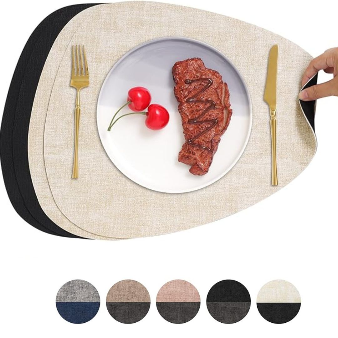 Con unas medidas de 30 x 45 cm, estos individuales son perfectos para cualquier tipo de mesa y, además, son reversibles, ofreciendo dos colores en cada lado.